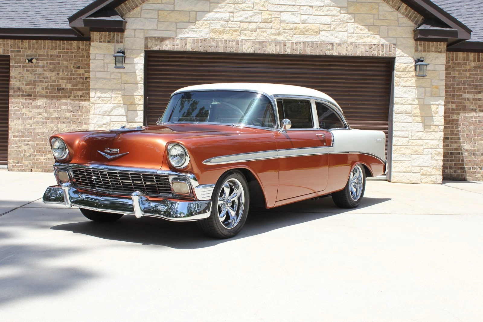 For sale is a 1956 Chevrolet Bel Air two-door post car. It has been totally restored over a 10 year period. Painted in the original paint scheme style but with a custom metallic Sierra Gold and Adobe Biege paint.