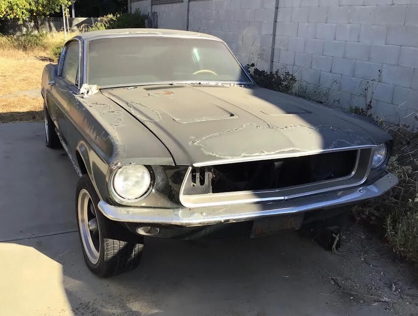 1968 Ford Mustang Fastback original black plate car in non running condition.