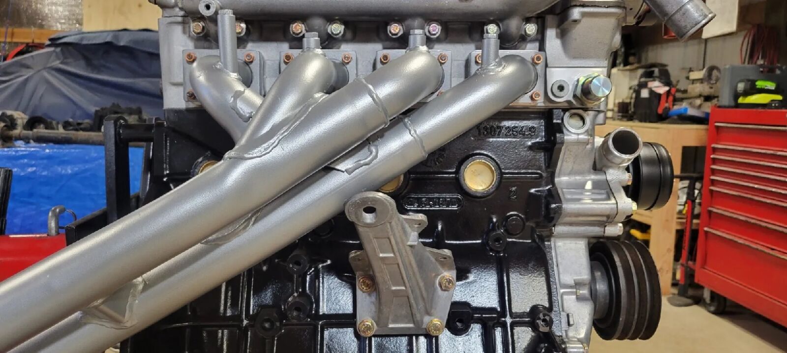 This BMW 2.3-liter S14B inline-four engine, paired with a Getrag five-speed manual transmission, was originally removed from an E30 M3 showing just under 70k miles. The components were acquired after which the engine was rebuilt.