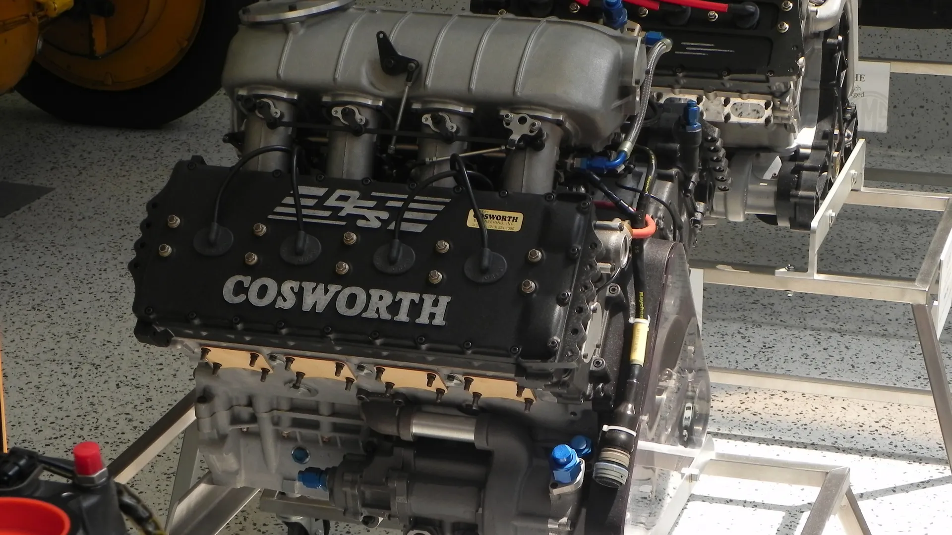 The engine features aluminum alloy construction, double overhead camshafts, and 32 valves. This Ford-Cosworth DFX V8 is offered with a turbo charger, exhaust headers and additional parts. This engine is a turbocharged 2.65-liter version of the Double Four Valve (DFV) engine that was initially developed by Cosworth for Formula One racing and later adapted for IndyCar racing by the Vel’s Parnelli Jones Racing Team