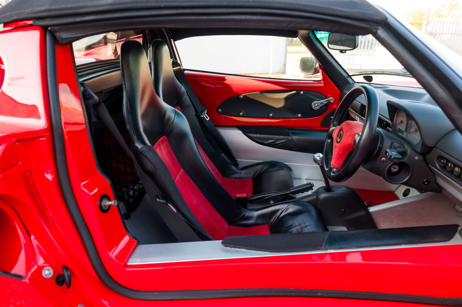 Lotus Elise Prima Serie RHD, colore Calypso Red, in condizioni estetiche e meccaniche eccezionali, mai usata in pista.