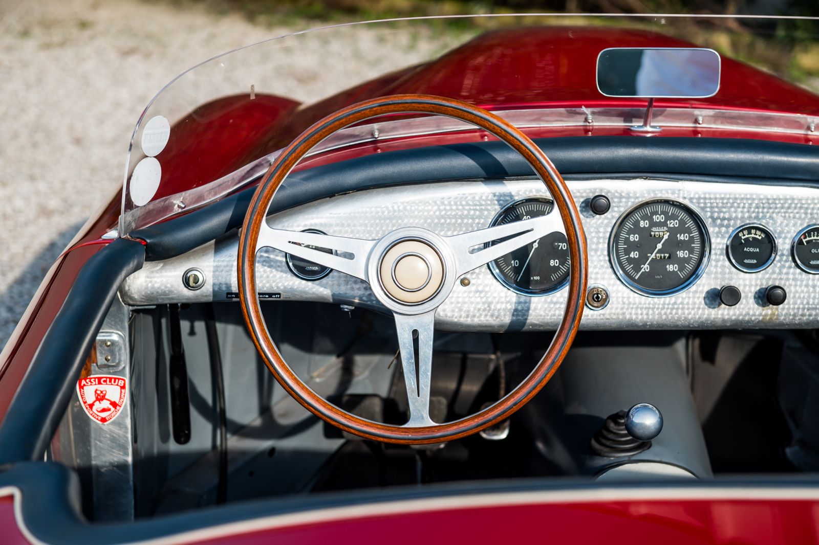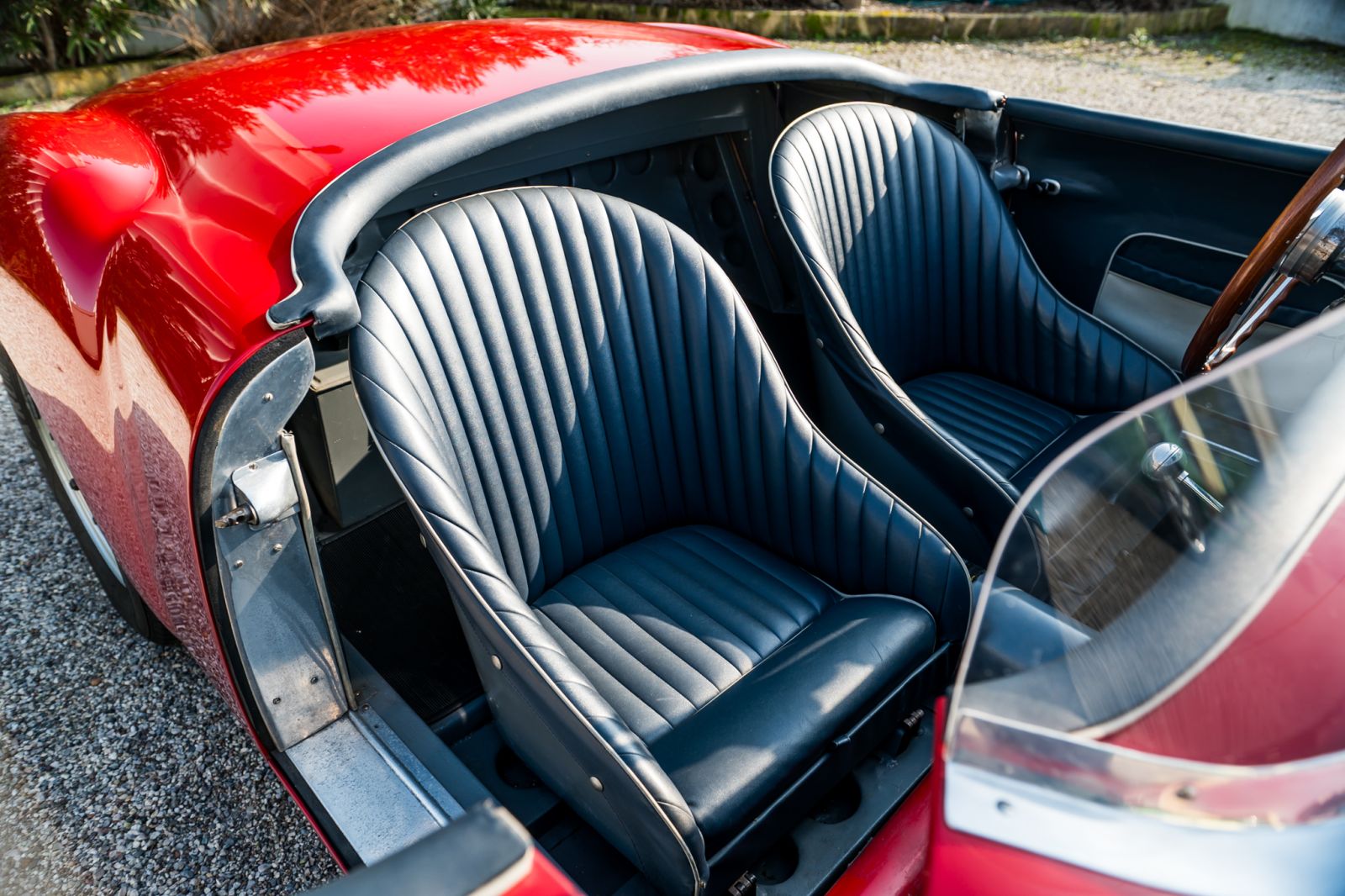 Questa SIATA Daina che vi proponiamo è il telaio no. SL0185, realizzato in esemplare unico. L’auto fu realizzata durante i primi mesi del 1952 come ordine speciale del Direttore Commerciale della SIATA, l’Ing. Luigi Segre. Luigi Segre, infatti, d’accordo con la direzione della SIATA, ritiene appropriata la presenza ufficiale della vettura SIATA alla Mille Miglia del 1952, con un’ulteriore vettura oltre alle due Daina GS già iscritte, per confermare le capacità competitive del nuovo modello Daina Gran Sport e per mostrare la versatilità del telaio che poteva essere anche la base per carrozzerie sportive speciali. Venne quindi personalmente commissionato al carrozziere Rocco Motto di Torino un’automobile con carrozzeria in alluminio, per partecipare alla Mille Miglia. Motto costruisce una carrozzeria tipo “barchetta” in alluminio: nasce così questa SL0185, molto ben proporzionata e dalla forma equilibrata oltre che molto leggera.